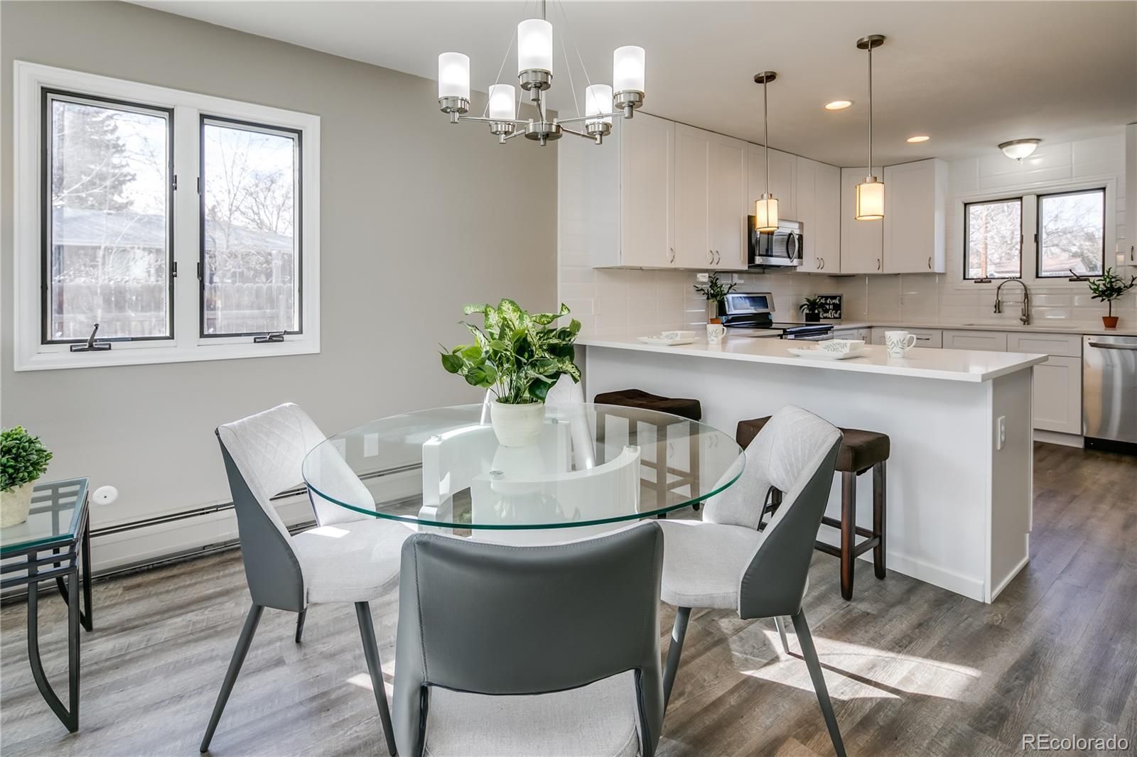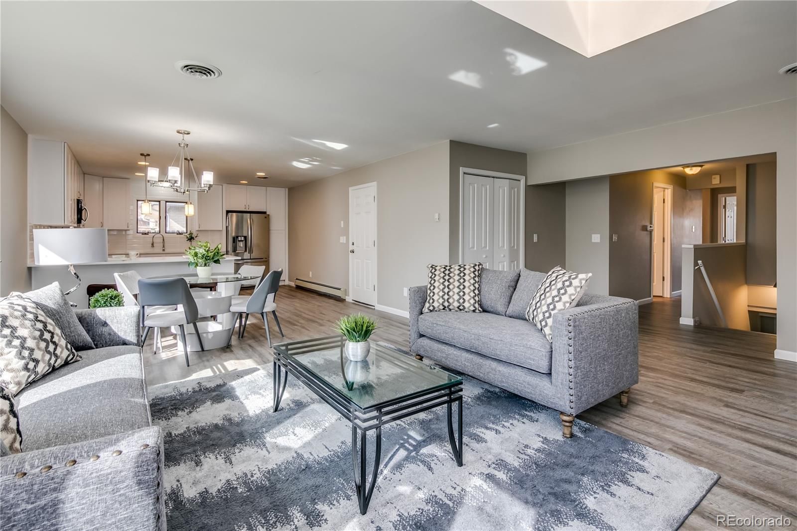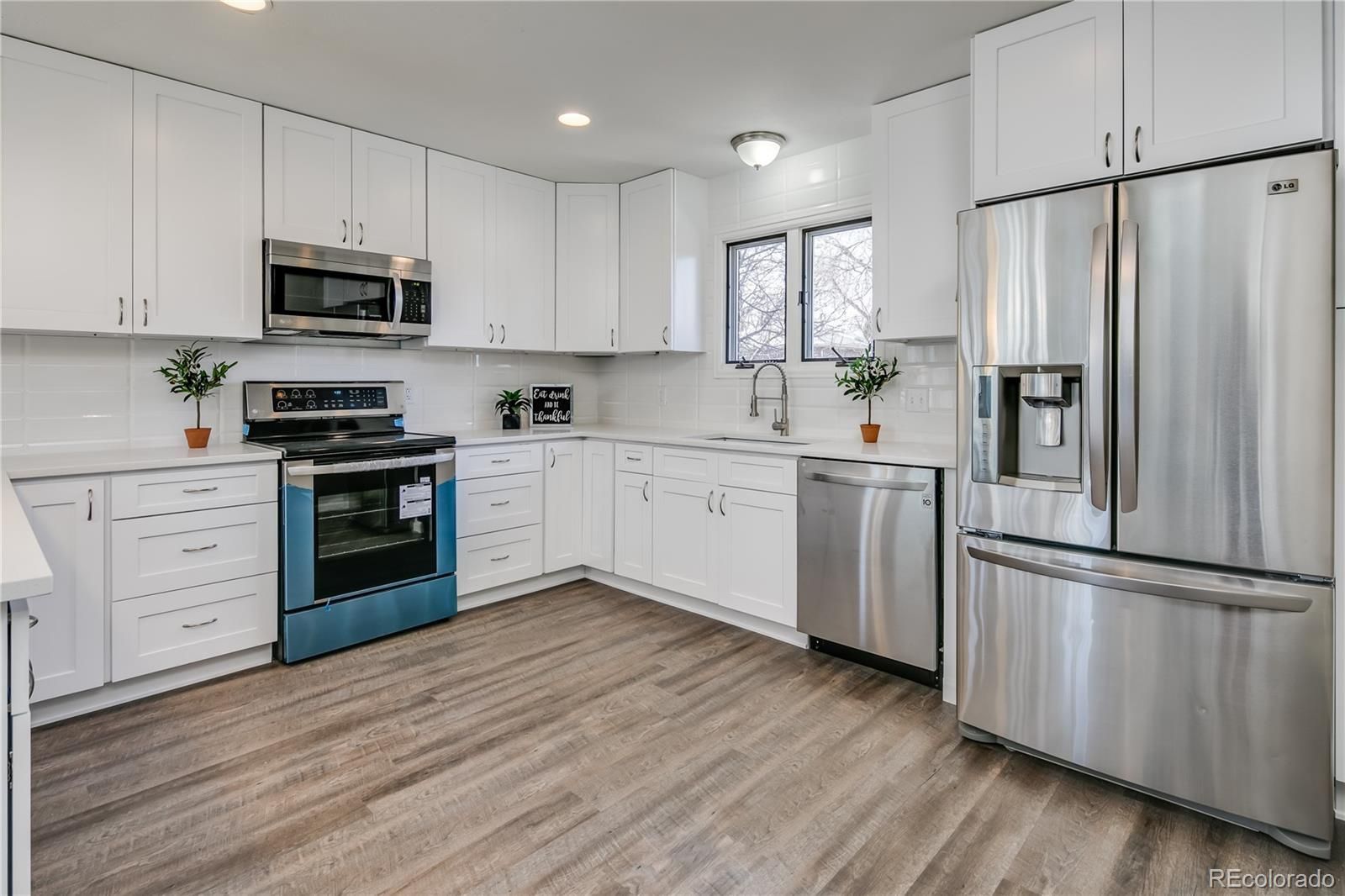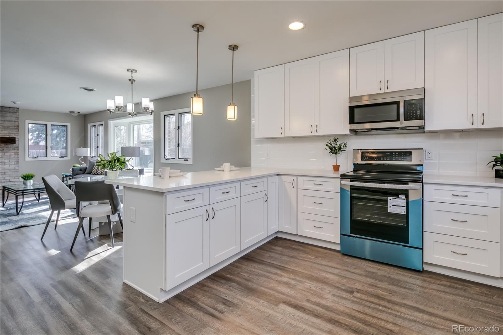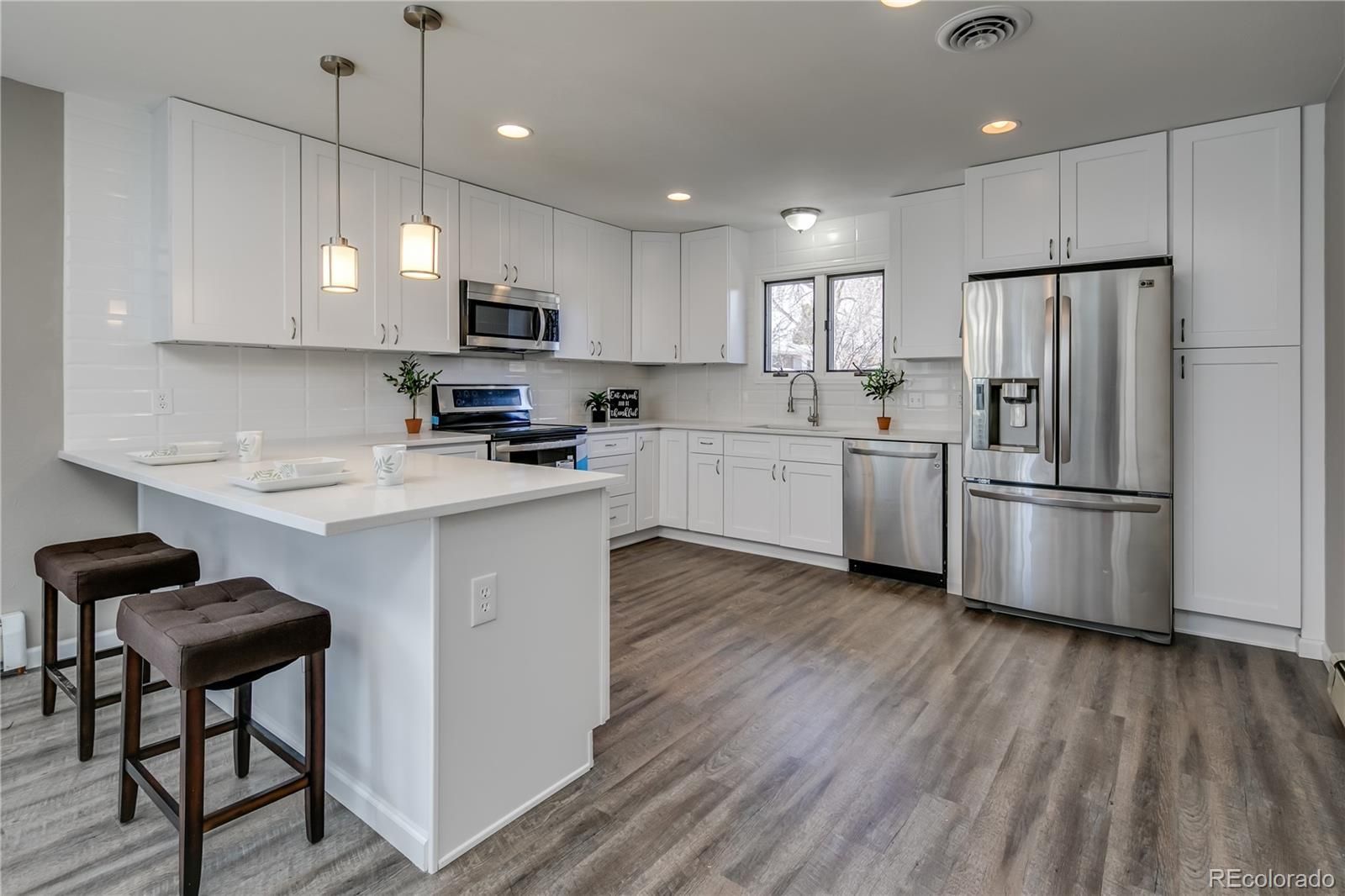 Welcome to this stunning remodeled and expanded ranch, one of the largest in the neighborhood! With spacious eating and family area, the open-concept main level is perfect for entertaining. The kitchen features new quartz countertops, luxury vinyl plank flooring, stainless steel appliances, gas stove, pendant lighting, new paint, new trim, new carpet, new doors, and interior. All bathrooms have been upgraded with new tile, tubs, showers, sinks, light fixtures, and modern finishes. Bedrooms are oversized. The basement features a flex space, bathroom with shower, and bedroom with built-in cabinetry. The multiple living areas provide ample space for families of any size, as the house is nearly 3,000 finished SF. The home sits on a lot size of 8,000+ square feet, with a freshly painted back deck and extra storage in the backyard shed. Located just south of Belmar Shopping area, minutes from 6th Avenue access for mountain or city commuting, and near parks, rec center, bike paths, lakes, and libraries. You won't want to miss out on this opportunity!
